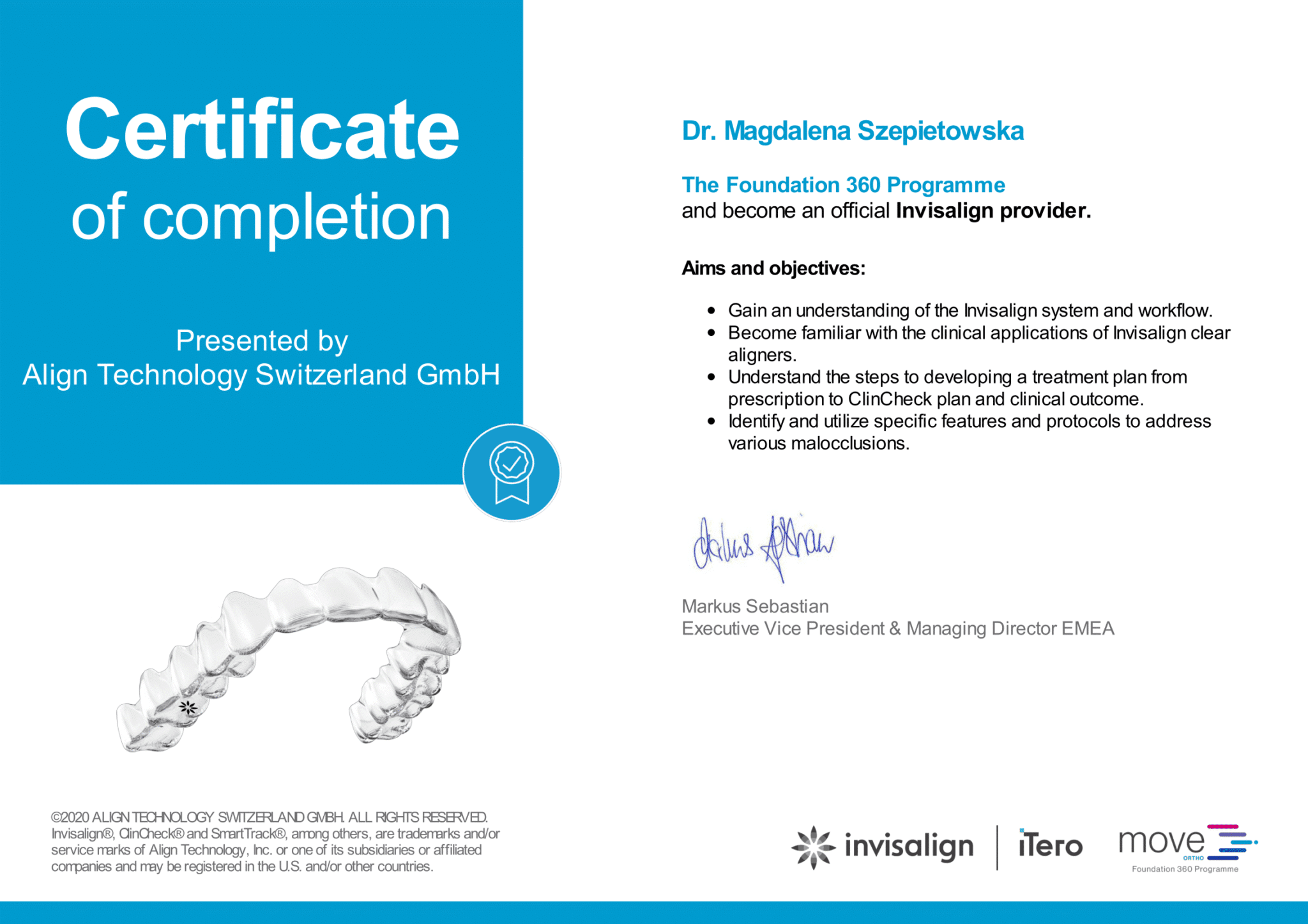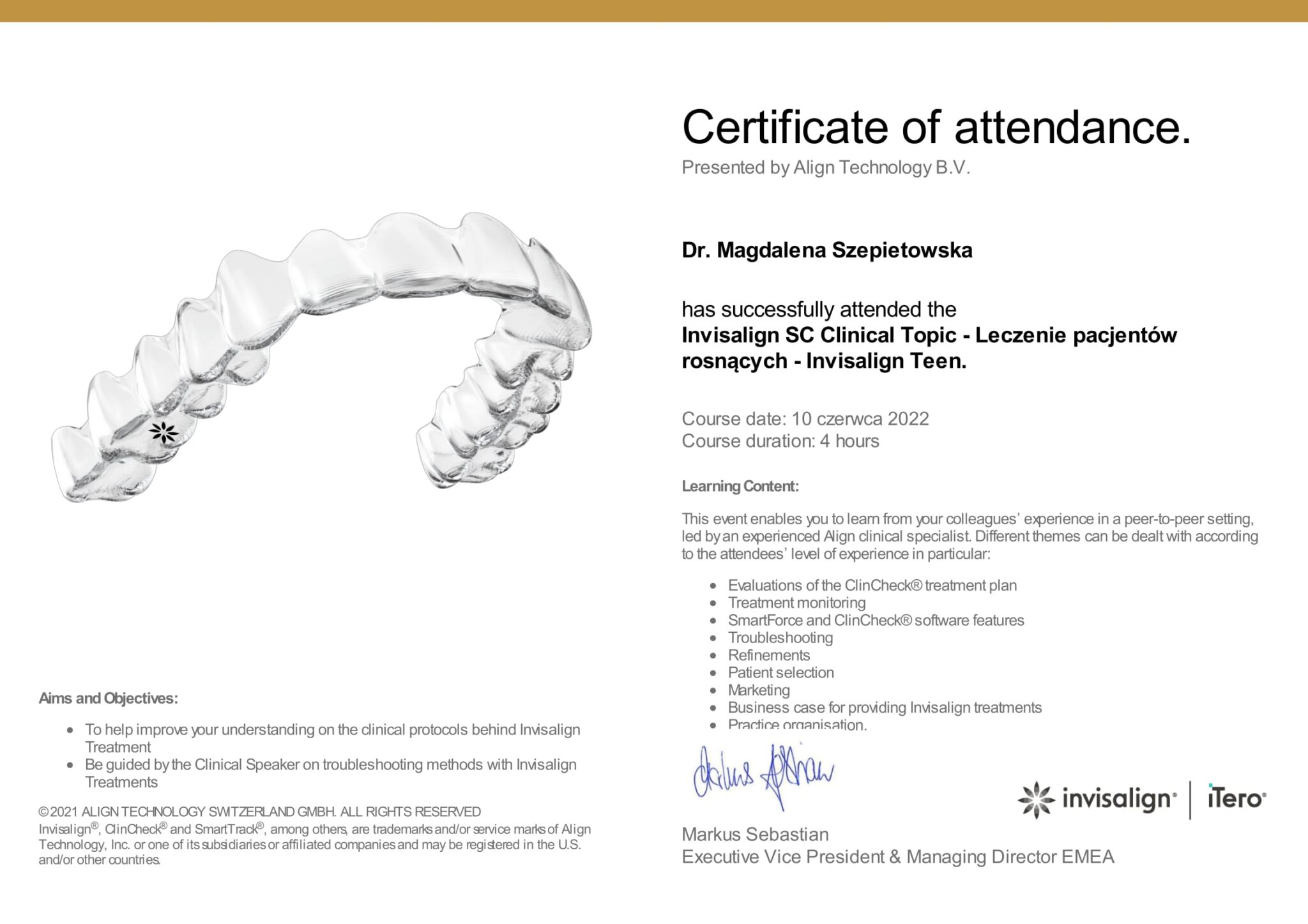 Prezentowane certyfikaty są potwierdzeniem naszego zaangażowania, wysokich standardów pracy i aktualnej wiedzy medycznej. To również gwarancja, że trafiają Państwo w ręce specjalistów, dla których priorytetem jest zdrowy, piękny uśmiech każdego pacjenta.